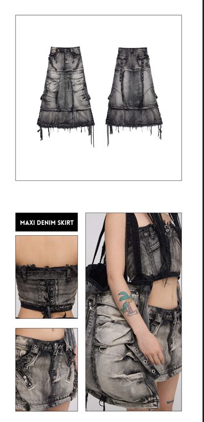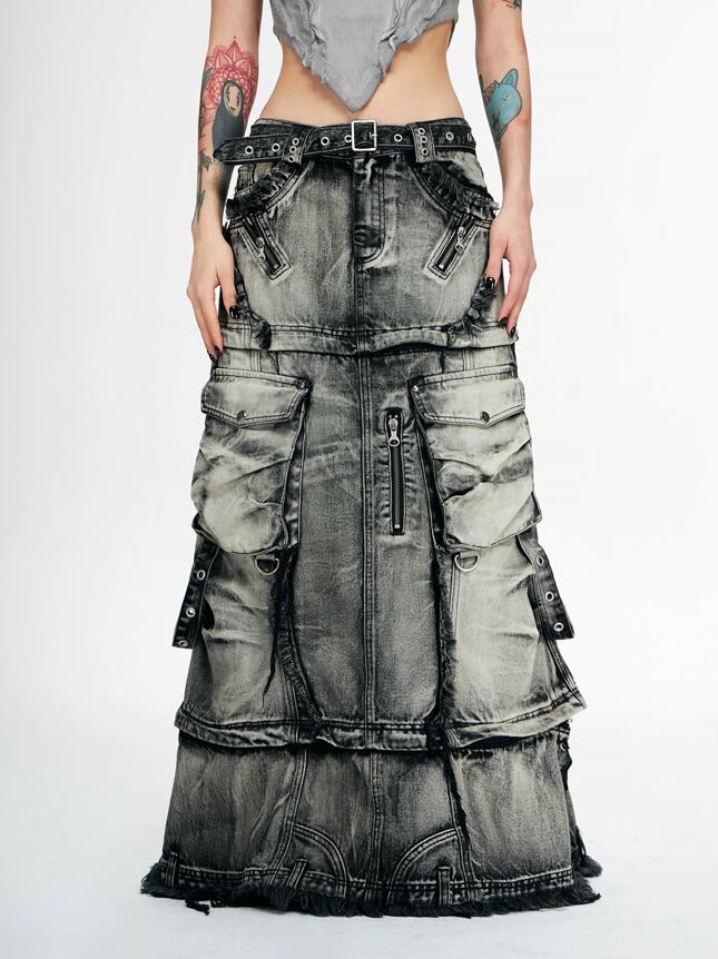 PERSONSOUL THREE-STAGE FADED MAXI DENIM SKIRT パーソンソウル
